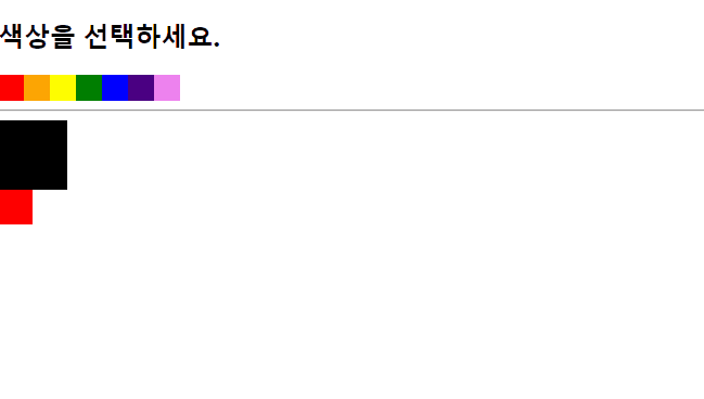 3. 각 <div>는 color 값을 배경색으로 설정되어 있으며, 클릭 또는 오른쪽 클릭(컨텍스트 메뉴) 이벤트를 처리합니다.
